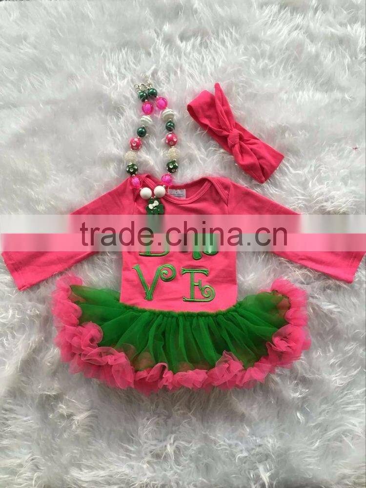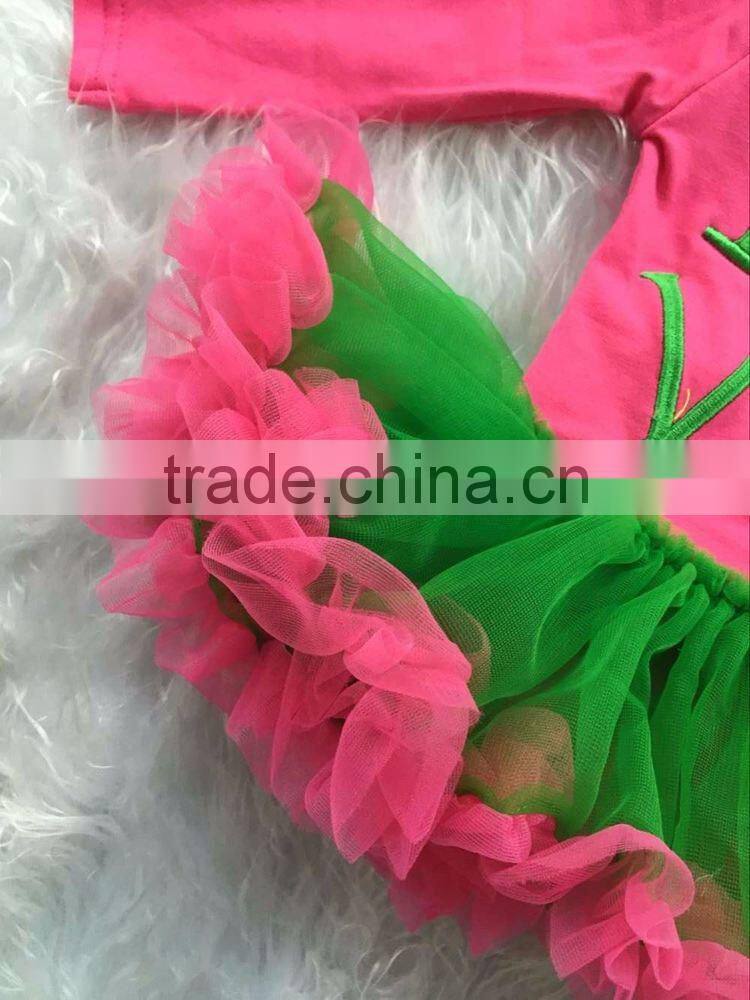 2016 new St.Patrick day baby girls infant romper hot pink green ruffle romper kids wear hot sell with matching headband sets