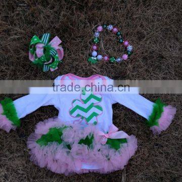 2015 St Patrick shamrock baby romper kids dresses cottom romper with matching necklace and bow set