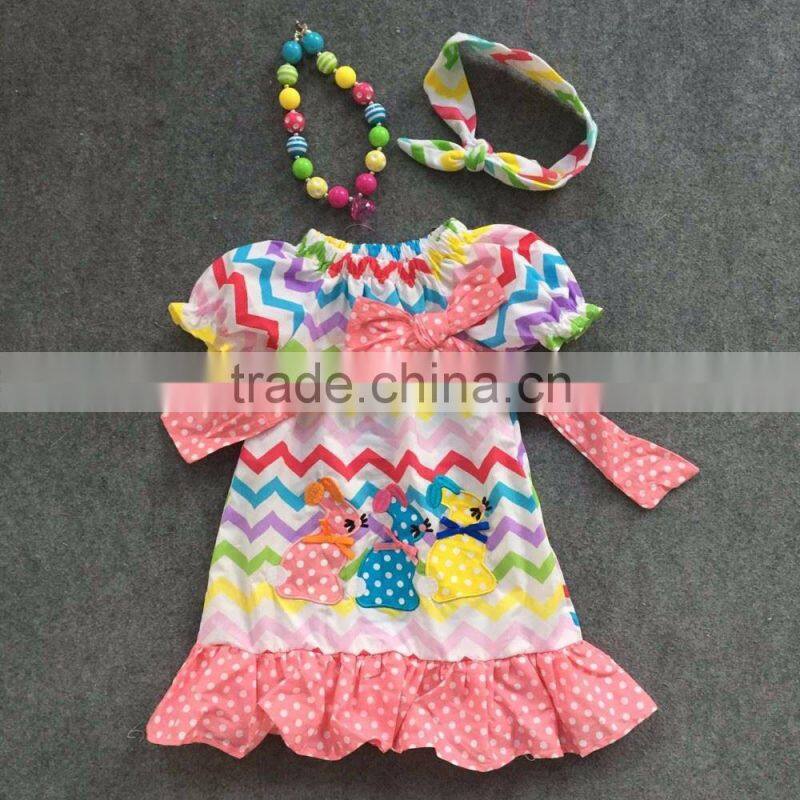 2016 New Arrival Easter Design Rainbow Chevron Bunny Girls Dress Hot Sell Cute Girls Party Dress With Matching Accessories