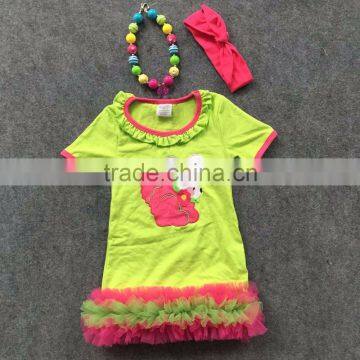2016 new Easter girls dress baby girls bunny dress ruffle short sleeves Summer clothes with accessories set
