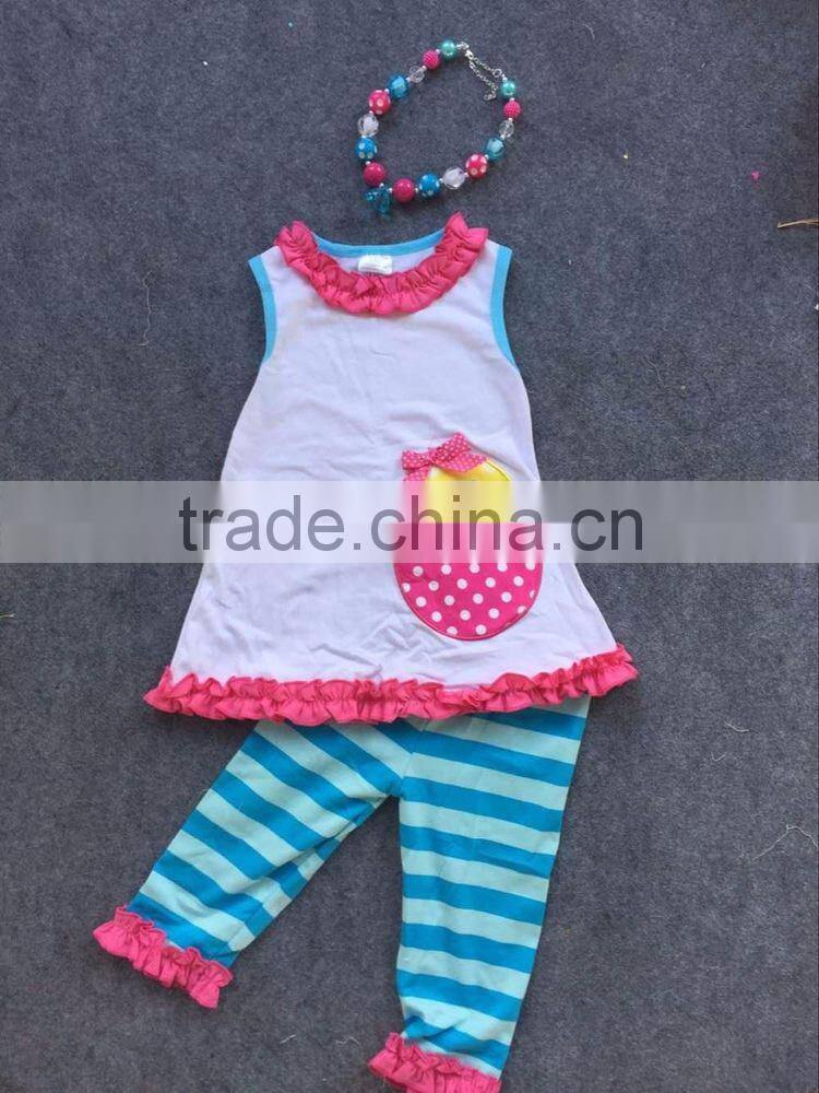 2016 new Spring arrival 2-7t Easter chick baby girls sleeveless blue/white pant kids fashion outfits with matching necklace