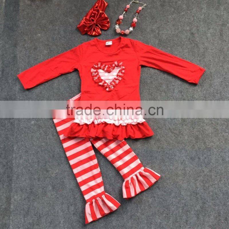 2016 Valentine's day heart outfits grils party clothes toddler baby pant heart red top stripes pant girls