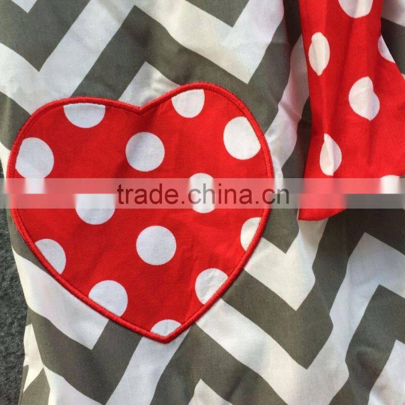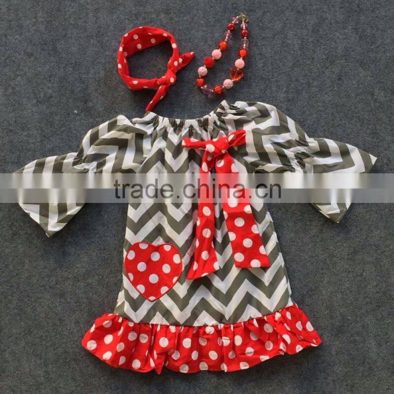 2016 Valentine's day infant girls dresses cottom heart chevron dress kids clothes with matching necklace and headband set