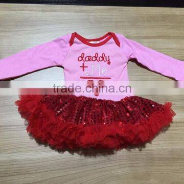 2016 new Valentine's day baby girls "Daddy+Me" red sequins ruffle clothes baby kids wear romper hot sell sets