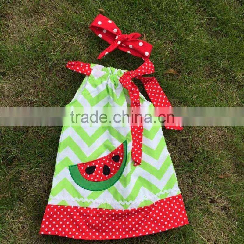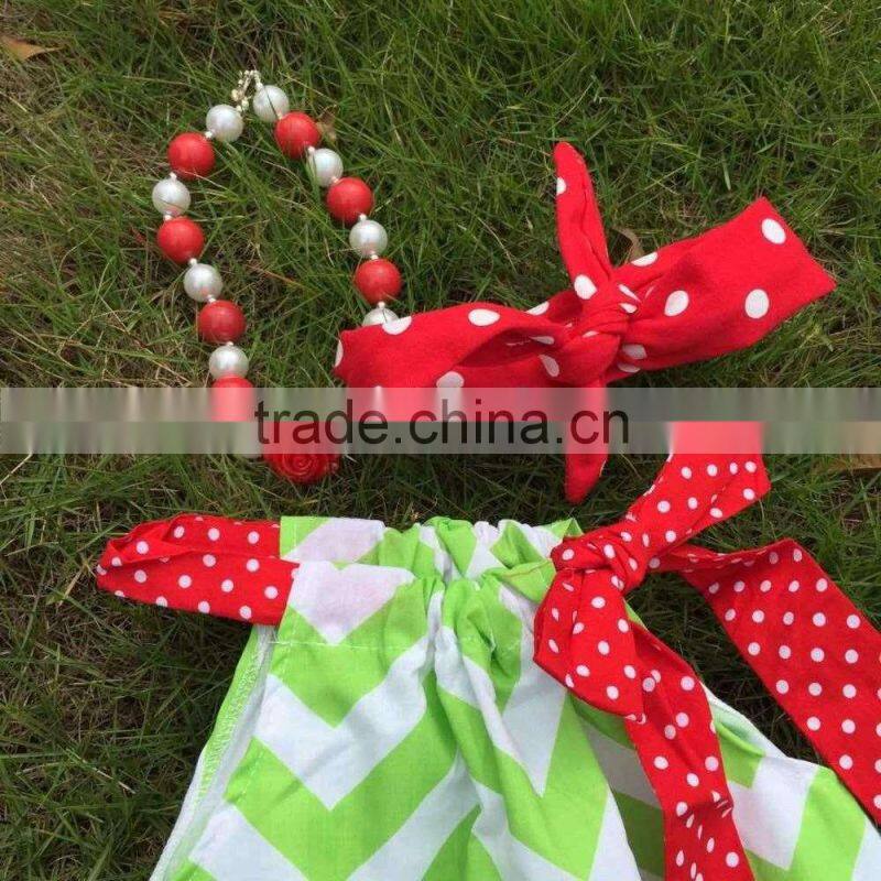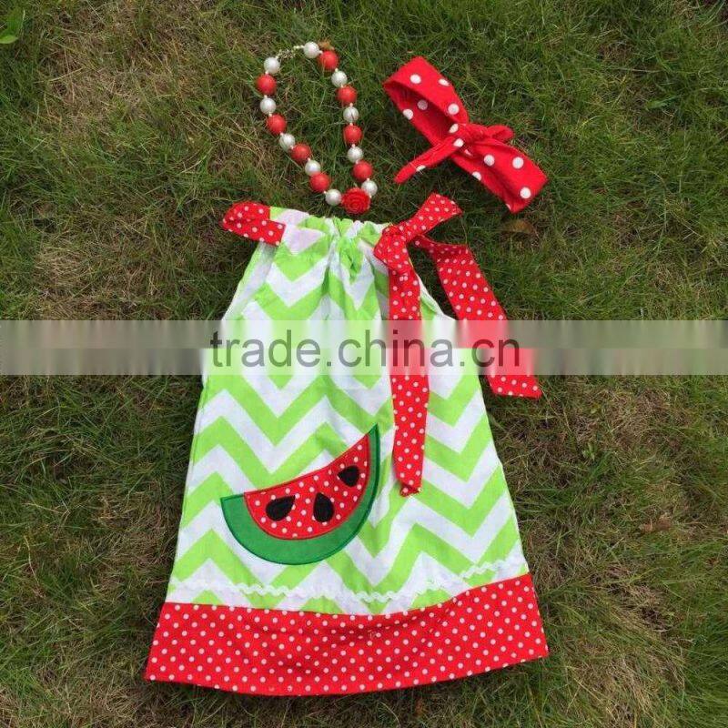 Professional design latest style girls watermelon green chevron dress with necklace and headband