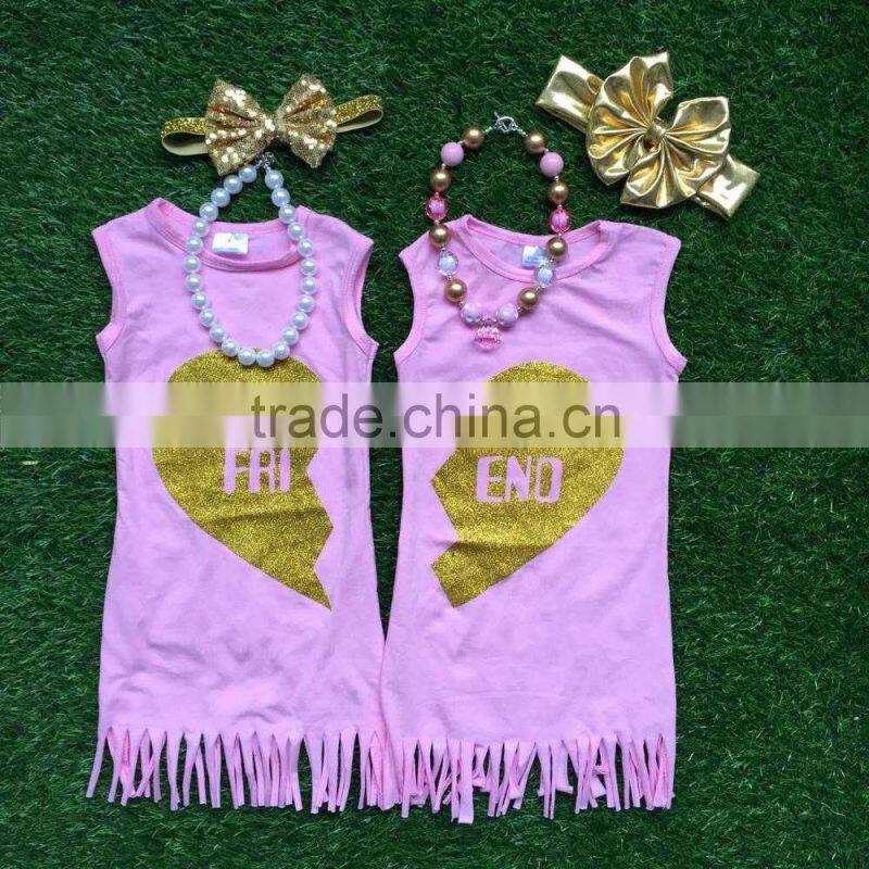 baby girls Summer dress pink best friend dress girls sister dress girls Tassel dress with accessories