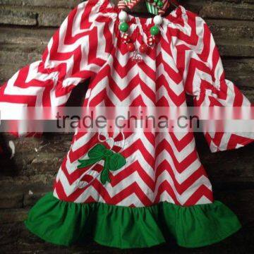 Baby Girls Christmas Red White Chevron Candy Cane Dress With Matching Hair Bows and Chunky Necklace Set
