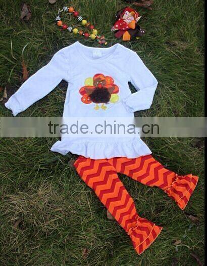 2014 new girls thanksgiving top pant set with matching necklace and hair bow set