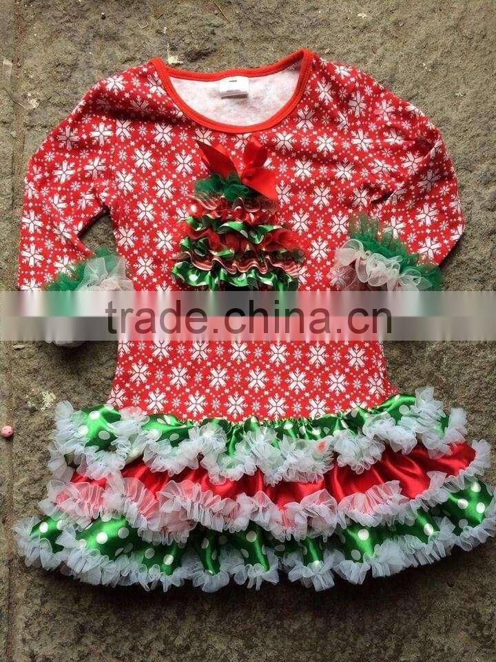 Baby Girls Snowflake Christmas Tree Dress Chirtmas Dress With Matching Necklace