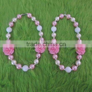 Children plastic Necklace Girl Party Pearl Necklace With Rose