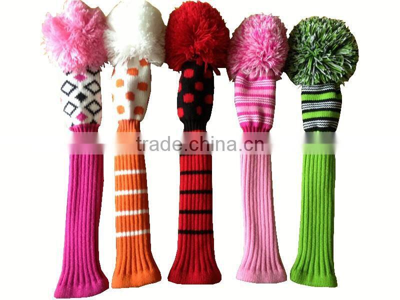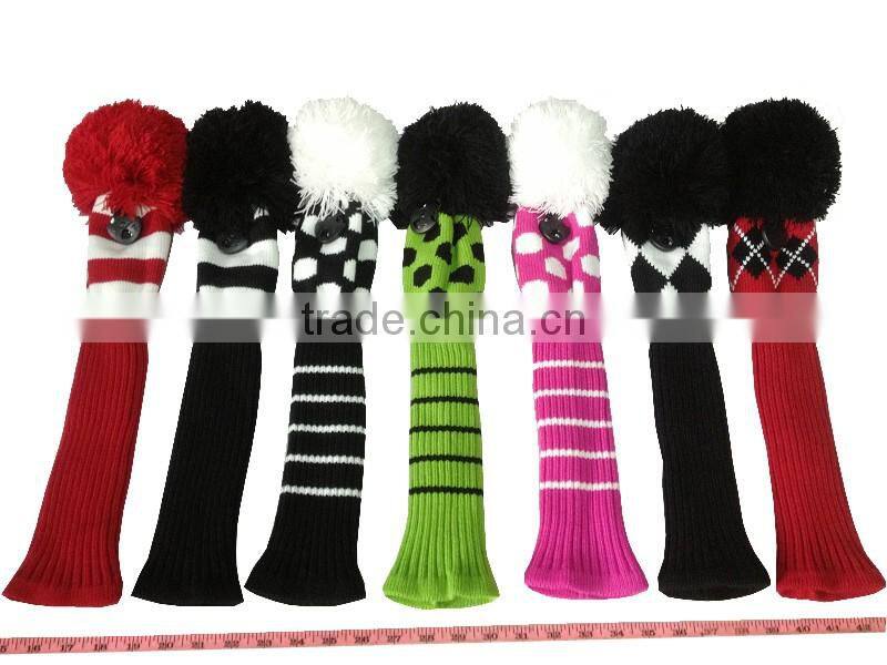 2017 Colorful Strap Pom Pom Sock Golf Driver Headcover