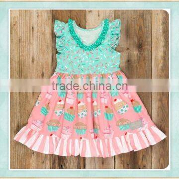 Children frocks dress for girl 5 years ice cream flutter sleeve pear style short dress summer kids clothing