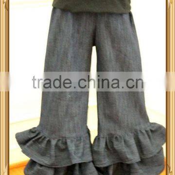 Persnickety denim pants baby girls double ruffle denim pants wholesale children's boutique clothing