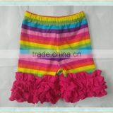 2017 Girls Red and White Stripes Ruffle Little Kids Wholesale Cotton Shorts