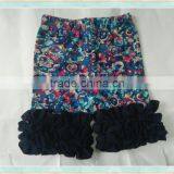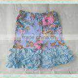 School Uniforms Baby Girl Wholsesale Boutique Clothes Ruffle Bule Floral Print Crossfit Children's Shorts