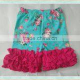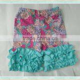 Icing Shorts Baby Wholesale Froral Print Girls Ruffle Green Shorts Cotton Leggings Pants
