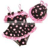 2015 Design Kid Swimsuit One Piece Baby Girls Beach Wear With Cap