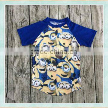 2017 new style posh boy t shirt little cartoon picture print ruffle design shirts for girls tops falling off