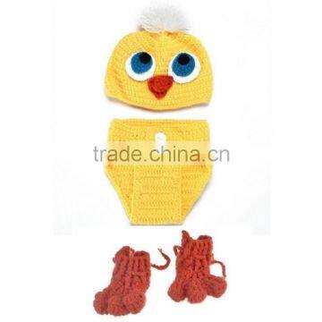 2016 Fashion Baby Handmade Cartoon DUCK Model Knitted Hat Baby Hat Pant Shoes Set
