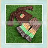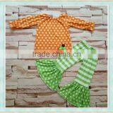 Baby Girl 2017 New Product Private Custom Pumpkin Shirt Ruffle Pants Fall Boutique Outfit Long Set Kids Clothes
