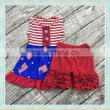 Wholesale Children's Boutique Clothing July 4th Ruffle Clothes Bib Tank Top and Striped Ruffle Short Sets