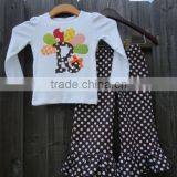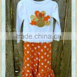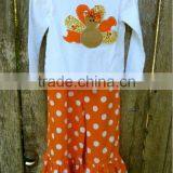 Wholesale Children's Fall Outfits Kids Thanksgiving Day Clothing Set Lovely Baby Turkey Applique Shirt and Ruffle Pant Set