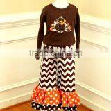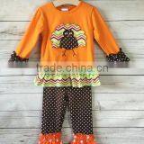 Kids Clothing Manufacturers Turkey Embroidery Long Sleeve Girls Outfits Wholesale Thanksgiving Fall Boutique Clothing 2017