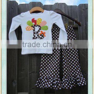 Turkey Initial Ruffle Pant Set Thanksgiving Day Outfit Kids Clothes Children's Fall Clothing