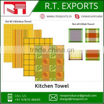 We at RT Exports are the Manufacturer & Exporter of cotton Fabric Varieties, all kinds of Household Textiles and made-ups. Our wide industry experience has enabled us in offering an extensive array of Kitchen Towels. A Kitchen towel is a piece of absorbent fabric usually cotton or terry used for wiping and drying the dishes in the Kitchens. Common household textile towels are usually made from cotton. They can be manufactured in any design prints or yarn dyed with a twill/dobby/jacquard weave. The Cotton Kitchen towel are highly demanded in market due to its absorbent and easy to clean features.