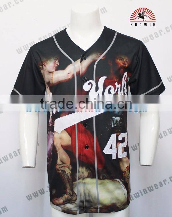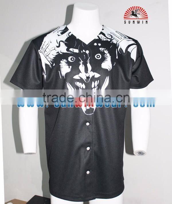 100% polyester Black Short Sleeve Full Button UP Mens Baseball Jersey/custom baseball jersey