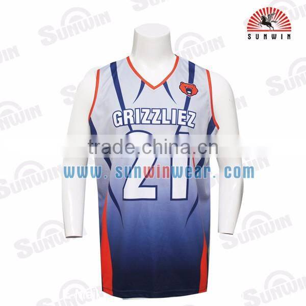 2016 Best Sublimation 100% Polyester Basketball Jersey Custom Logo Design Latest Basketball Jersey