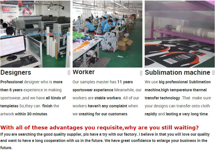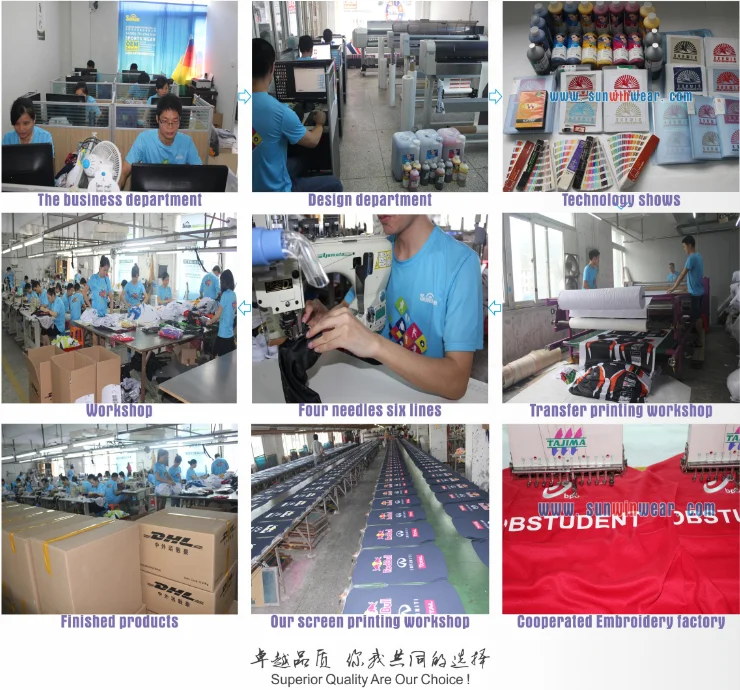 Sunwin is direct a factory in SHENZHEN which lasting more than 16 years already from 2003 to 2016, top 10 Garment factory in china with 2,000 square meters .which are professional in making all kinds of sportswear like sublimation t-shirt, polo shirt, sublimation hoodie, ice hockey jersey, Basketball jersey, baseball Jersey,Rugby jersey,yoga pants etc. Sunwin products are based on top quality,cause we concern about each details.
