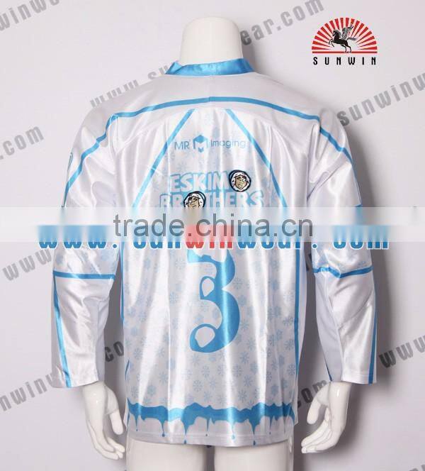 Sunwin knitwear Co.,Ltd. which is not only direct clothing line, but also professional printing garment factory for 11 years, high quality has been pursing for us. Many years experience making Ice hockey jersey,Rugby jersey, Cycling jersey, Baseball jersey etc. Stable production workers are our product quality guarantee, fast logistics express to fasten our production period.