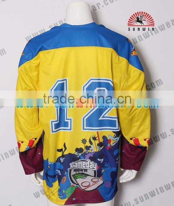 Sunwin knitwear Co.,Ltd. which is not only direct clothing line, but also professional printing garment factory for 11 years, high quality has been pursing for us. Many years experience making Ice hockey jersey,Rugby jersey, Cycling jersey, Baseball jersey etc. Stable production workers are our product quality guarantee, fast logistics express to fasten our production period.