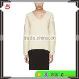 High Quality 100% Cashmere Ladies Slips On V-Neck Sweater With Ribbed Trims