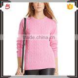 Antique-Rose 100% Cashmere Loose Crew Neck Women Chinese Sweater With Inverted Triangle Stiching on Back