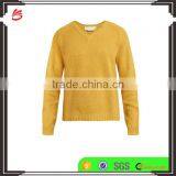Hot Sale Crew Neck Bright Yellow Silk Blended Cashmere Sweater Women