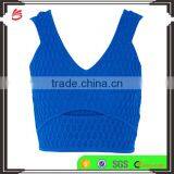 Sexy Designed Deep V-Neck Plain Blue Sweater Crop Top for Ladies