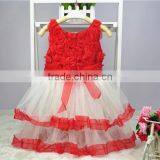 Newest Girl Party Dress Red Flower Fashion Kid Dresses Children New Year Hot Sale GD31025-3
