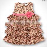 2016 Baby Girl Leopard Layered Dress With Pink Flower Bow Kids Wear Size:80 90 100 GD40218-28