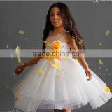 New Fashion Girl Floral Dress Pretty Girl Princess Dress With Yellow Flower Cute Kids Clothing GD90427-2