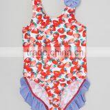 New Summer Girl Swimwear With Red Strawberry Ruffle One-Piece Girl Beachwear Kids Clothes G-NP-S905-365