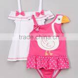 2016 Girls Summer Bathing Suit White Polyester Swimwear With Rabbit And Hat New Fashion One Piece Swimsuit For Girls SR40417-2