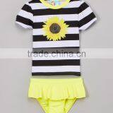 Newest Girl Beachwear With Sunflower Rashguard And Bikini Bottom Girl Flower Rashguard Girls Wear G-NP-TR905-396