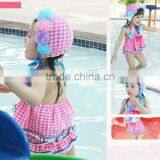 Fashion Kids Swimwear Child Flower Korea Style Cute Pink Summer Beach Bikinis With Hat PA And PU Bathing Suits SR40416-2