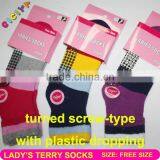 Lady Socks Cotton Custom Made Terry Turned Screw-type Socks With Plastic Dropping Dot Design Socks