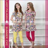 WHOLESALE CUSTOM-MADE S/S TOP+LEGGING CVC PRINTTING DESIGN PAJAMAS FOR WOMEN