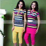 New 2014 Polo Collar Yarn Dyed Striped Pajama for Women