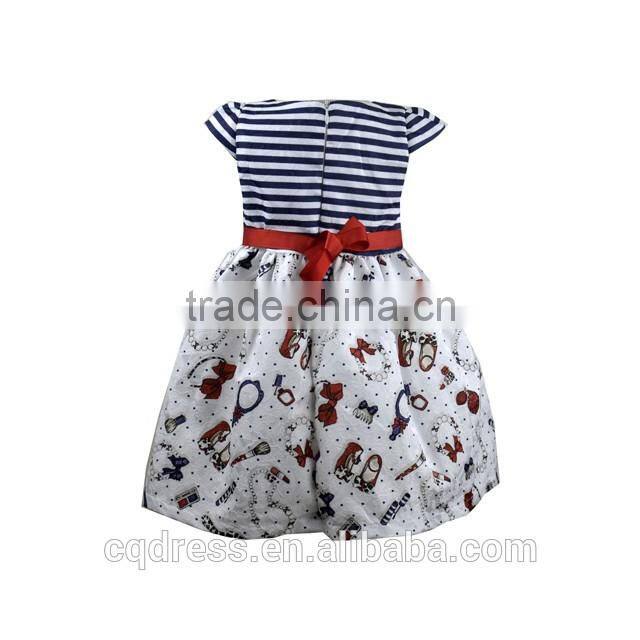 Home > Products > Girls Dresses > Bow Belt Cartoon Stripe Dopt Bubble Kids Dress