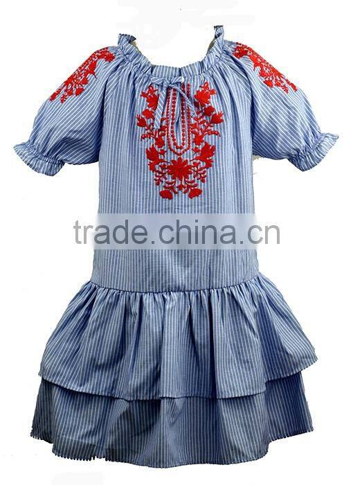 2017 Girl Party Enbroider Falbala Dress for Children Frocks Designs